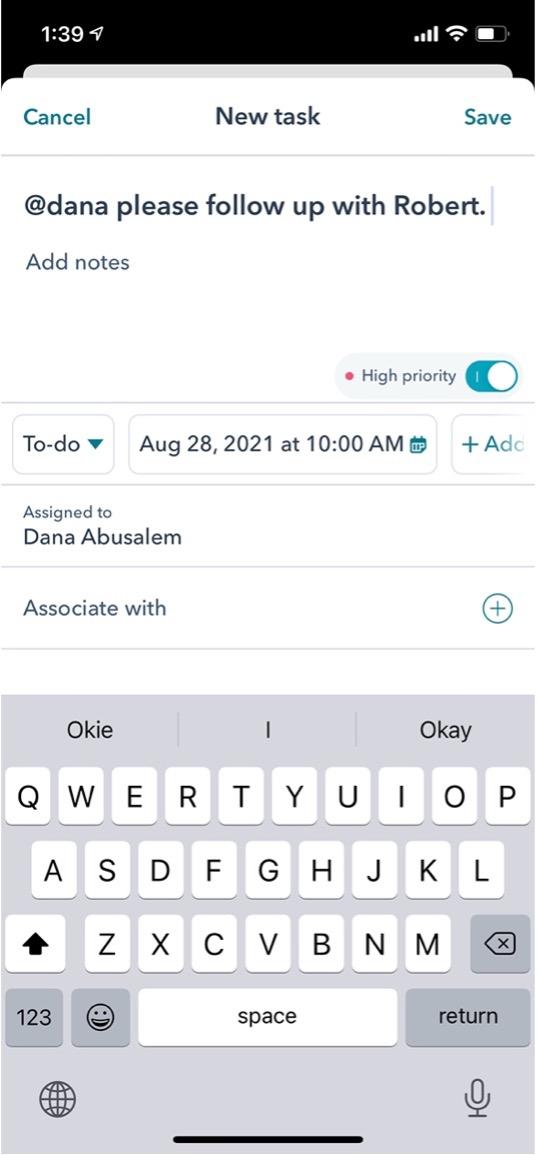 Creating a New Task using HubSpot's Mobile App (IOS View)