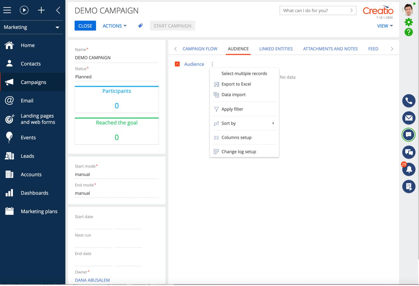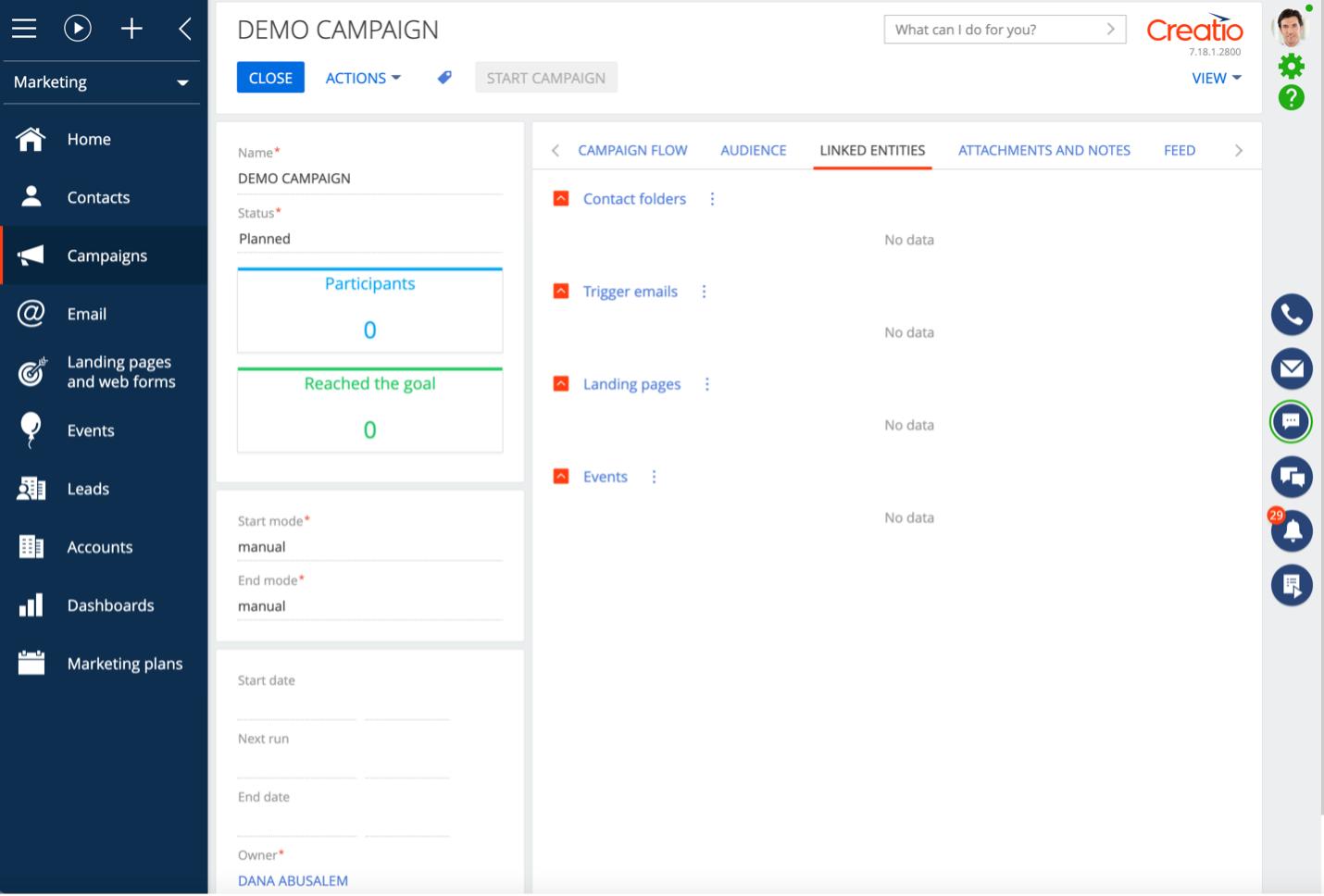 effectively. Within Creatio’s tool, users can build a campaign to inform